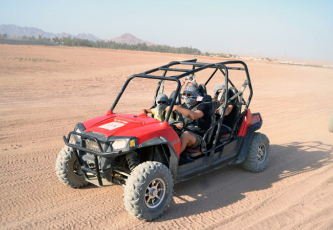 During a buggy safari, you can explore the local desert and surroundings of Sharm el-Sheikh in a special off-road vehicle. This exciting adventure will allow you to enjoy the beauty of the desert area and experience the adrenaline while driving a buggy on the sandstone of Sharma.
